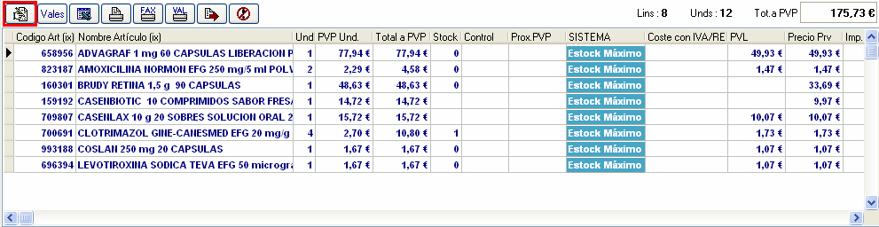Las líneas del Pedido se irán añadiendo automáticamente a partir de los datos del Albarán Electrónico Seleccionado.