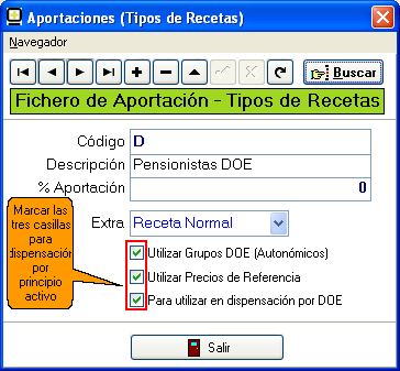IMPORTANTE !, Esta versión permite configurar las RECETAS PRIVADAS (MUFACE, ISFAS, etc) para que operen con los Grupos DOE Nacionales en vez de los Autonómicos. Pulse aquí para ver cómo se hacer.