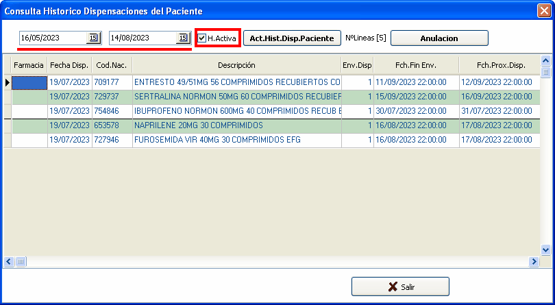 2º/ Pulsar botón "Historico" o la letra H